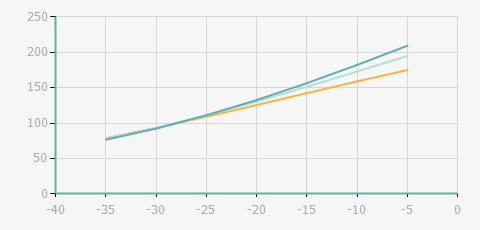 | 蒸發溫度 | 制冷量+/-5% | 能耗+/-5% | 現在能效+/-5% | 能效+/-7% | ||||