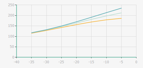 | 蒸發溫度 | 制冷量+/-5% | 能耗+/-5% | 現在能效+/-5% | 氣體流速+/-5% | 能效+/-7% | ||||