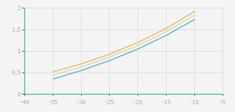 | 蒸發溫度 | 制冷量+/-5% | 能耗+/-5% | 現在能效+/-5% | 氣體流速+/-5% | 能效+/-7% | ||||